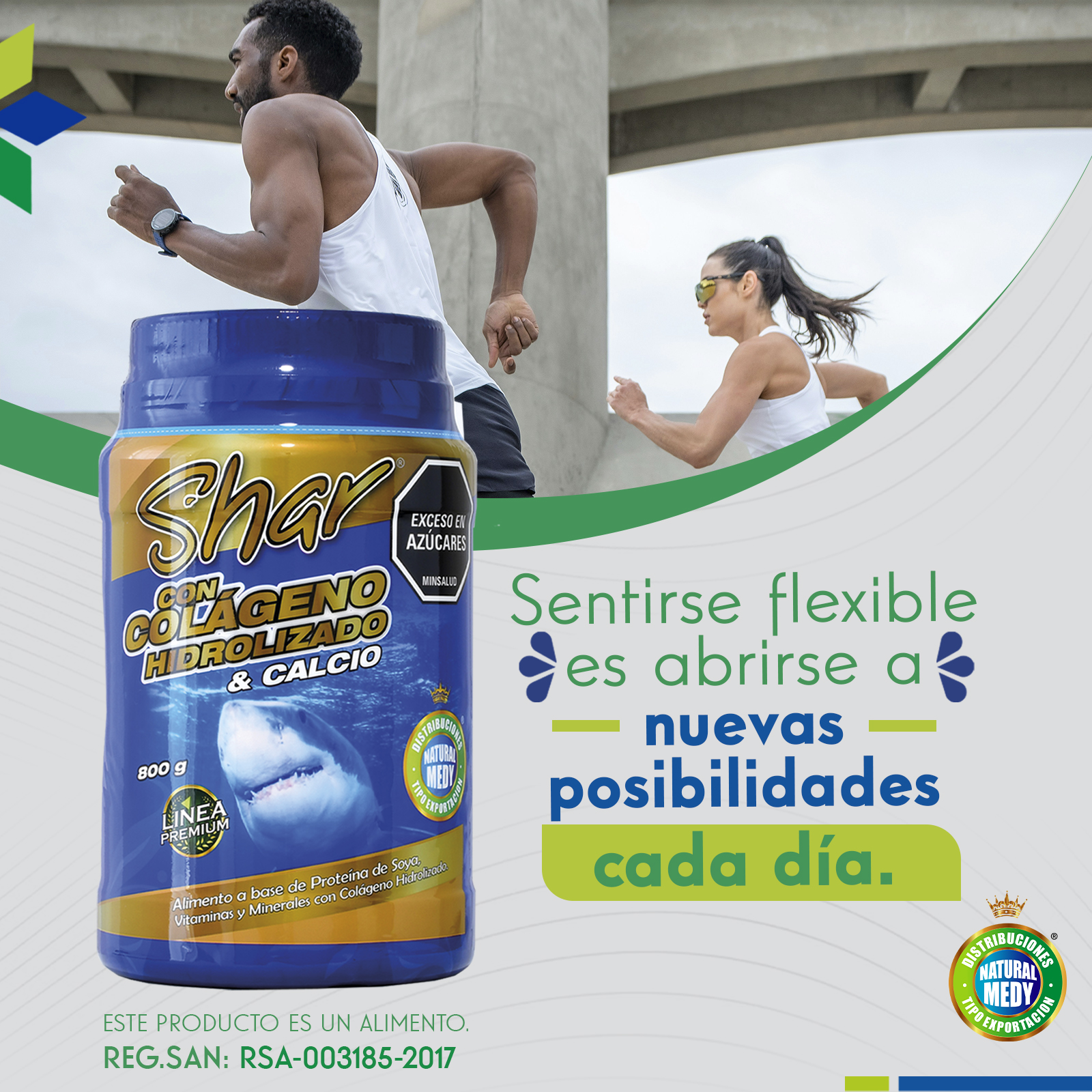 Alimento a base de proteína de soya, vitaminas y minerales con colágeno hidrolizado.